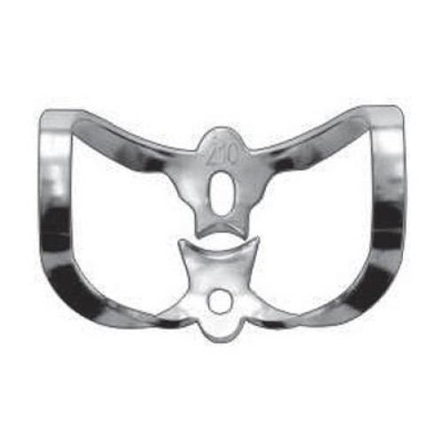 Кламп № 210 производства компании ТОР ВМ типа «бабочка» применяется при пломбировании полостей в пришеечных областях. Они надежно удерживают коффердам, позволяя эффективно изолировать манипуляционную область.